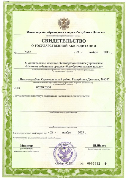 Полное наименование образовательной организации* Муниципальное казенное образовательное учреждение "Нижнемулебкинская средняя ощеобразовательная школа"